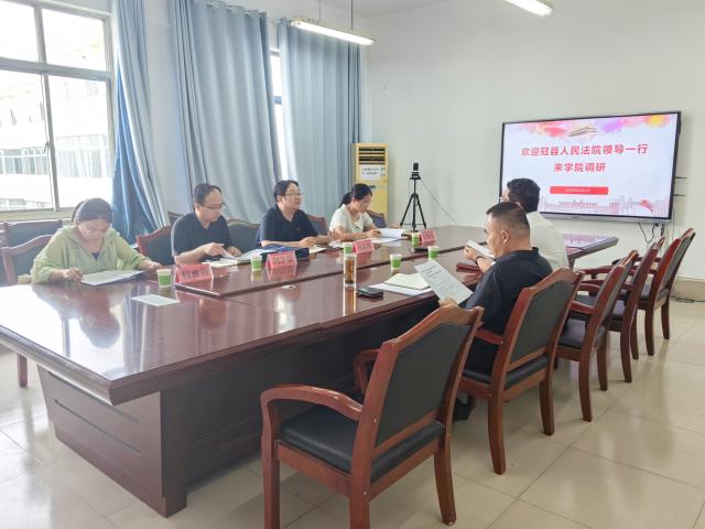 为推进人民法院案例库与法答网协同办案机制,提高司法裁判公正力与风险预警能力,9月4日,bbin游戏娱乐官网于西校区10#B507同冠县人民法院开展调研座谈会,bbin游戏娱乐官网院长杨道波,副院长刘海江,bbin游戏娱乐官网教师王涛、冯玉厅以及冠县人民法院代表团参加座谈会。