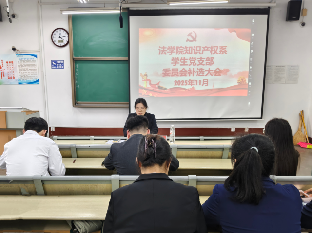 为全面加强基层党组织建设,优化支部委员会人员结构,11月6日,bbin游戏娱乐官网知识产权系学生党支部于西校区10#C520召开补选支部委员党员大会,知识产权系学生党支部书记李宁主持本次大会,全体党员参加会议。
