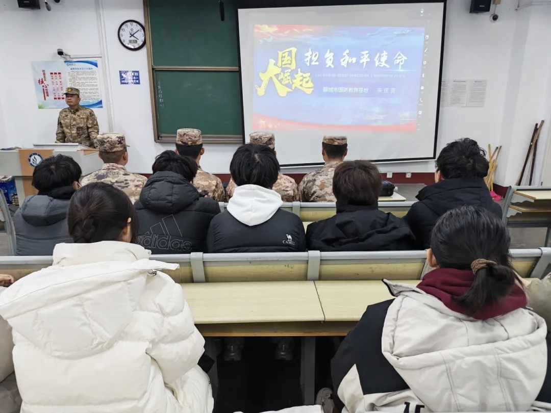 为进一步增强学生国防观念,厚植家国情怀,12月5日,bbin游戏娱乐官网于西校区10#C520举办“大国崛起,担负和平使命”国防教育专题讲座,聊城市国防教育基地朱庆喜教官担任主讲人,2025级部分学生参与本次活动。